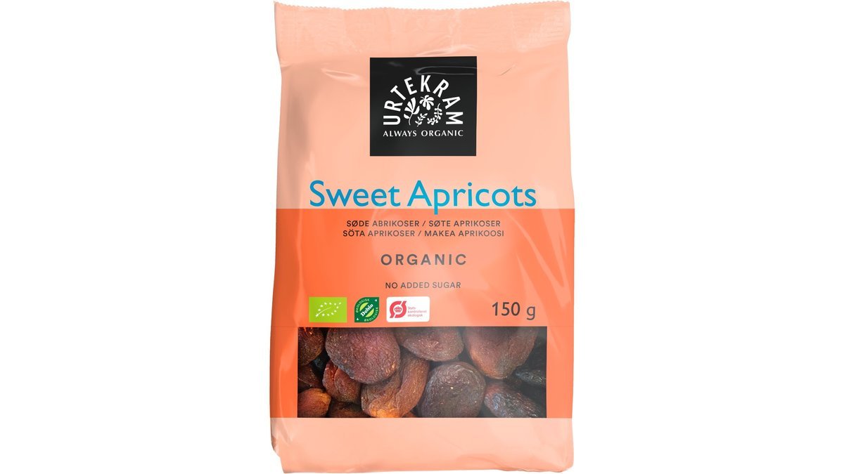 URTEKRAM® Søde abrikoser er håndsorterede, soltørrede abrikoser. Udstenede, men enkelte hårde partikler kan forekomme. Abrikoser indeholder et naturligt tilskud af kostfibre og sødme. Økologiske abrikoser må ikke svovles. Derfor er de mørkebrune og ikke lysegule. Spis dem som snack eller bag f.eks. fuldkornsboller med små søde abrikostern.