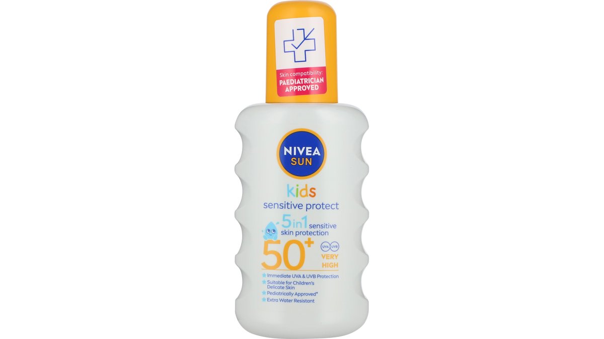 NIVEA SUN Kids Sensitive Protect & Play Spray SPF50 200ml beskytter den sensitive børnehud med effektive UVA/UVB filtre. Specielt udviklet til børns sensitive hud. Uden parfume og farvestoffer