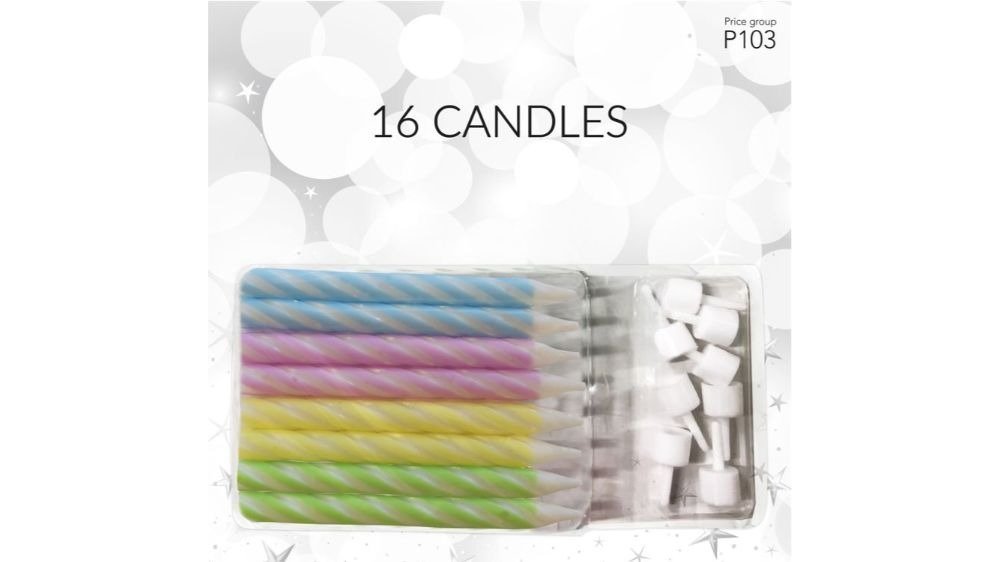 Store kagelys i fire forskellige pastelfarver med holdere, som kan bruges til din kommende fødselsdag eller fejring.