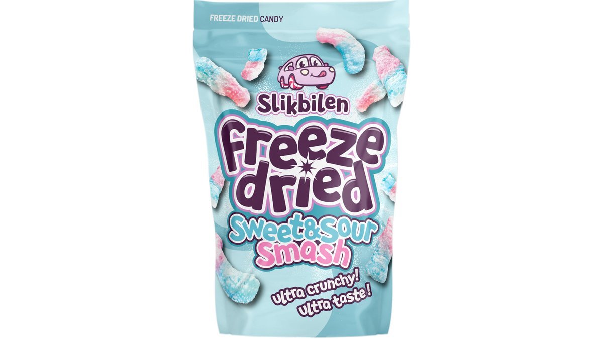 | Ingrediensliste | Glukosesirup, sukker, gelatine, syrer (æblesyre, citronsyre), surhedsregulerende middel (natriummalater), farvende fødevarer (koncentrat af spirulina, æble), smag, farve (anthocyaniner). |
