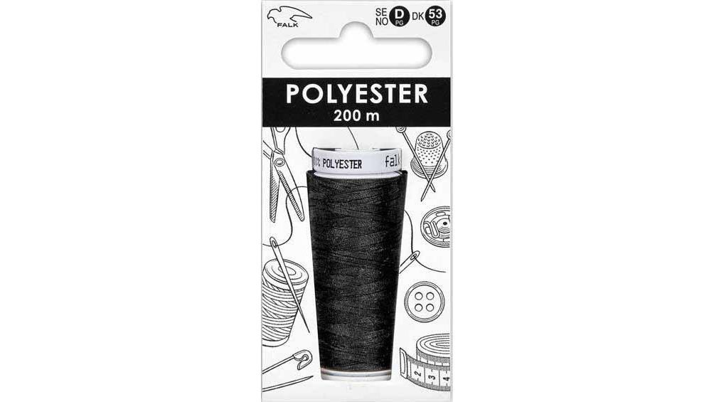 Sort sytråd i polyester, som måler 200 m. Sytråden passer både til symaskine og håndsyning.