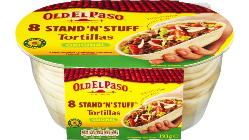Old El Paso Stand’n stuffTM er tacobåde formet af bløde hvedetortillas. De holder formen og er lette at fylde og nemme at holde i hånden.