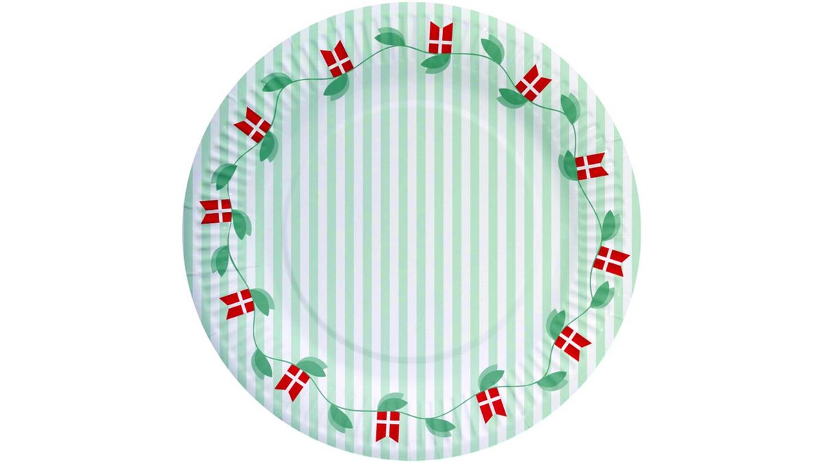 Paptallerkner m. motiv af garder m. flag, Happy Party