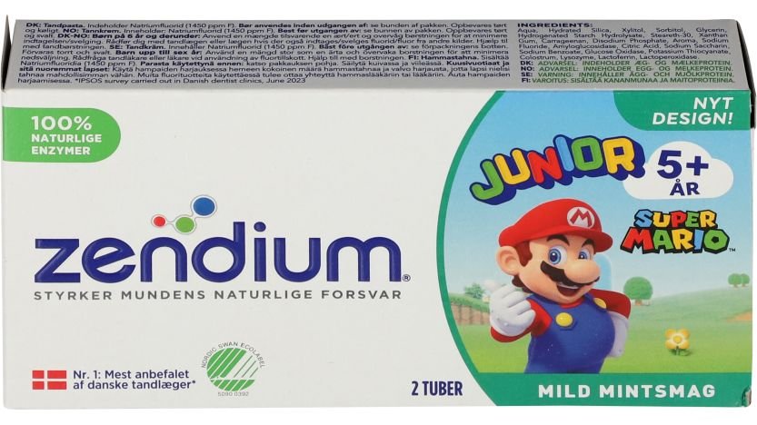 Zendium Junior er specielt tilpasset barnets tænder og mund med et mildt slibemiddel som skåner emaljen, foruden en lav grad af skumning, der gør børstningen af tænderne nemmere.