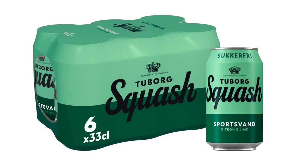 6 x 33 cl. Tuborg Squash Sportsvand sukkerfri er en læskedrik med citron- og limesmag. Indeholder sødestoffer.