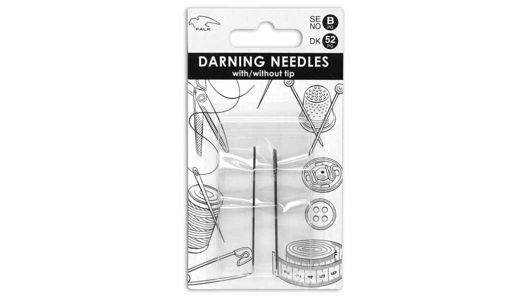 2 stk. Uldstoppenåle med eller uden spids. Perfekt til at fastgøre tråde, hæfte ender, sy sømme eller broderi.