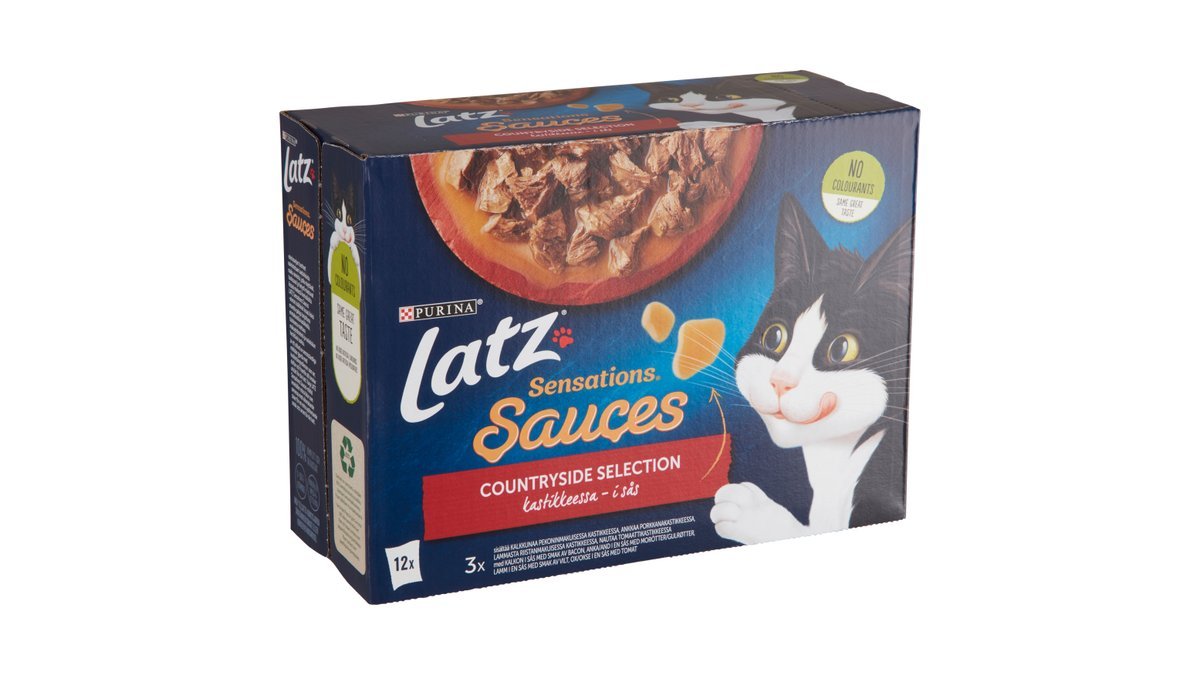 LATZ Sensations Sauces er en serie af uimodståelige måltider fremstillet med kvalitetsingredienser, der dufter og smager lækkert og ser indbydende ud for din kat. Hvert LATZ Sensations Sauces-måltid har møre bidder, som din kat vil nyde, serveret i sovs med forskellige smage for at give en fremragende smagskombination og en appetitvækkende aroma. De er desuden en kilde til omega -6-fedtsyrer med den rette sammensætning af vitaminer for at hjælpe med at holde din kat fuld af energi og klar til narrestreger! De er propfyldt med gode og sunde ting og opfylder 100% af din kats daglige behov, når du følger fodervejledningen. Men det er ikke alt! Latz Sensations Sauces fås i et bredt udvalg af smagskombinationer i fristende sovs! Så hvis du er så heldig at have en sensationel kat, kan du tilfredsstille dens hang til variation med LATZ Sensations Sauces! LATZ – helt uimodståeligt!