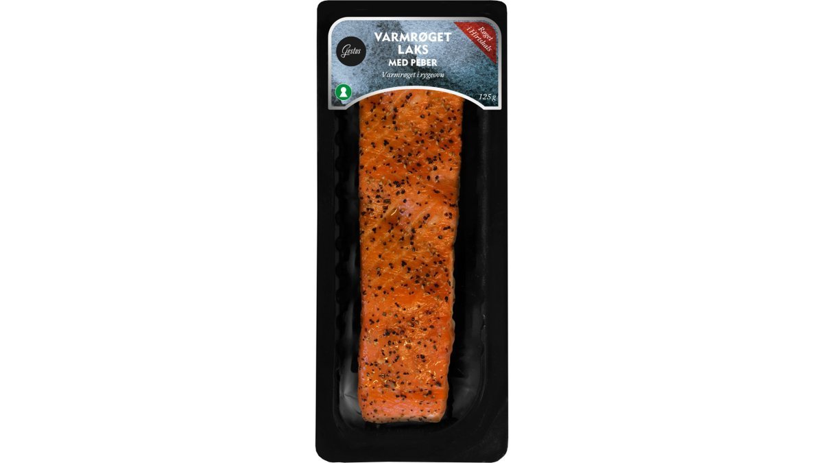 Den varmrøgede laks er krydret med peber for at opnå en dyb og intens smag. Gode på frokostbordet til jul, pinse eller påske. Gestus er en serie af velsmagende madvarer af god kvalitet, som passer ind i et hverdagsbudget. Gestus brænder for at give danskerne mest muligt for pengene, både når vi taler kvalitet, pris og smagsoplevelser.