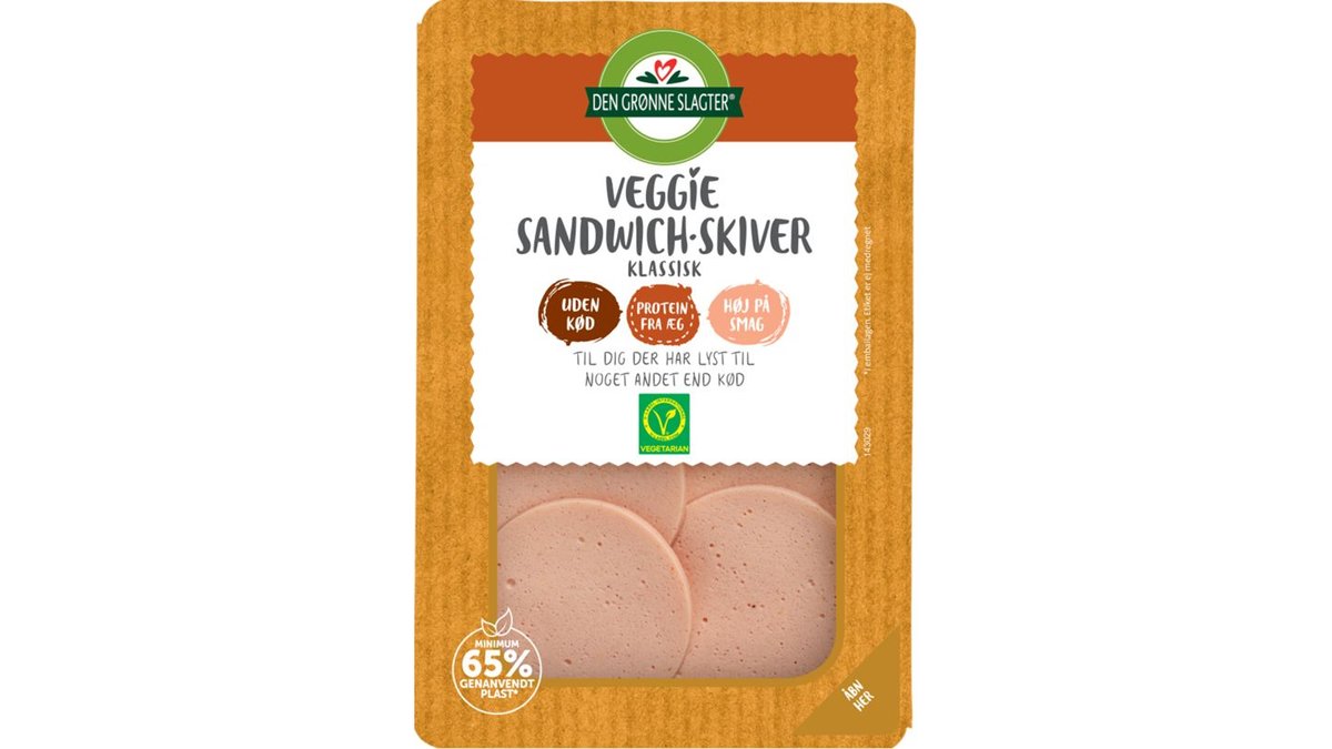 Den Grønne Slagter Veggie Sandwich-skiver er pålæg til dig, der har lyst til noget andet end kød. Det er vegetarisk skiveskåret pålæg, som er lavet på en base af æggehvidepulver og rapsolie. Vores Veggie Sandwich-skiver er tykke i skiverne og er ideel i en sandwich, i en wrap eller på dit rugbrød – velbekomme!