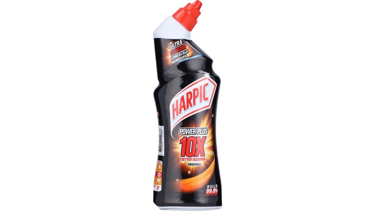 Harpic Power Plus 10X fjerner og forebygger kalk og misfarvninger. Den giver dit toilet en virkelig effektiv rengøring, og en dejlig frisk duft.